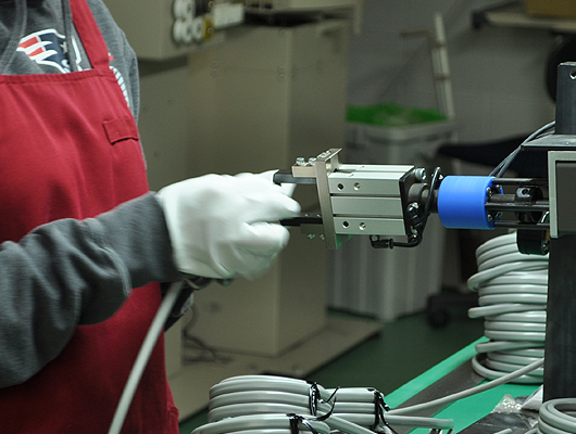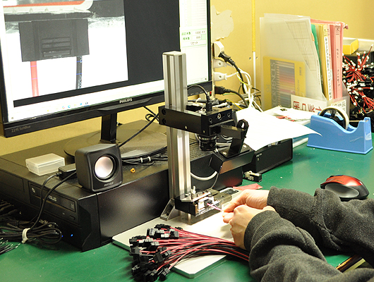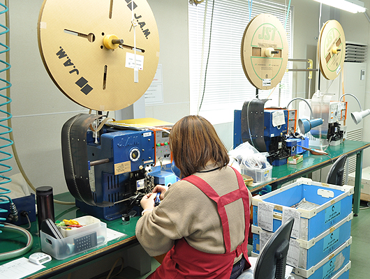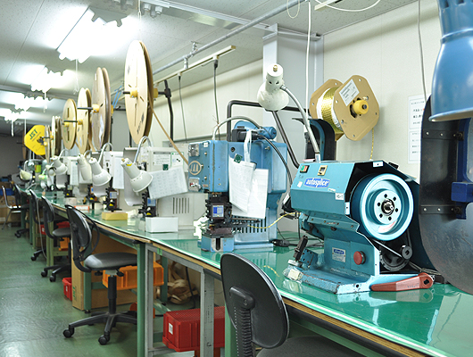 作業風景 シリコンボンド接着 カラーチェック 電線ストリップ 半田付け 半自動電線巻き取り ビニタイ締め 半自動電線溶着 全自動圧着機 全自動電線溶着機 ジャンパー線加工 半自動ラベル貼り機 電線加工巻取り機 半自動圧着機 半自動圧着機